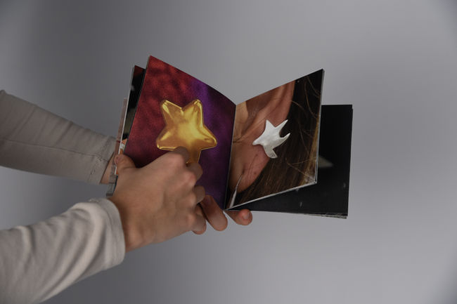 Im Alltag begegneten mir an vielen Orten unzählige Sterne. Die Vielfältigkeit der verschiedenen Formen fesselten mich und ich hielt sie fotografisch fest. Es entstand eine Dokumentation und ein weiteres Produkt in der Buchbinderei, ein Erlebnis für den/die Betrachter:in.